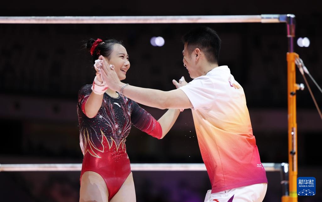 当日,2025年国际体操联合会(FIG)竞技体操世锦赛女子高低杠决赛在印度尼西亚雅加达举行。