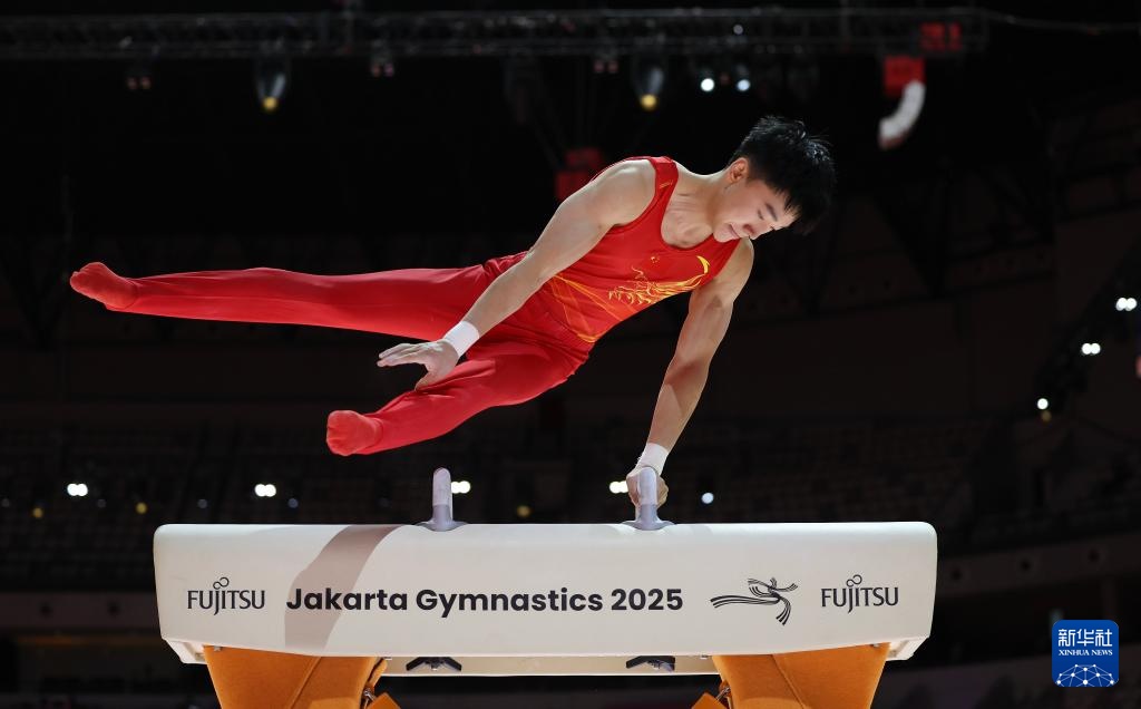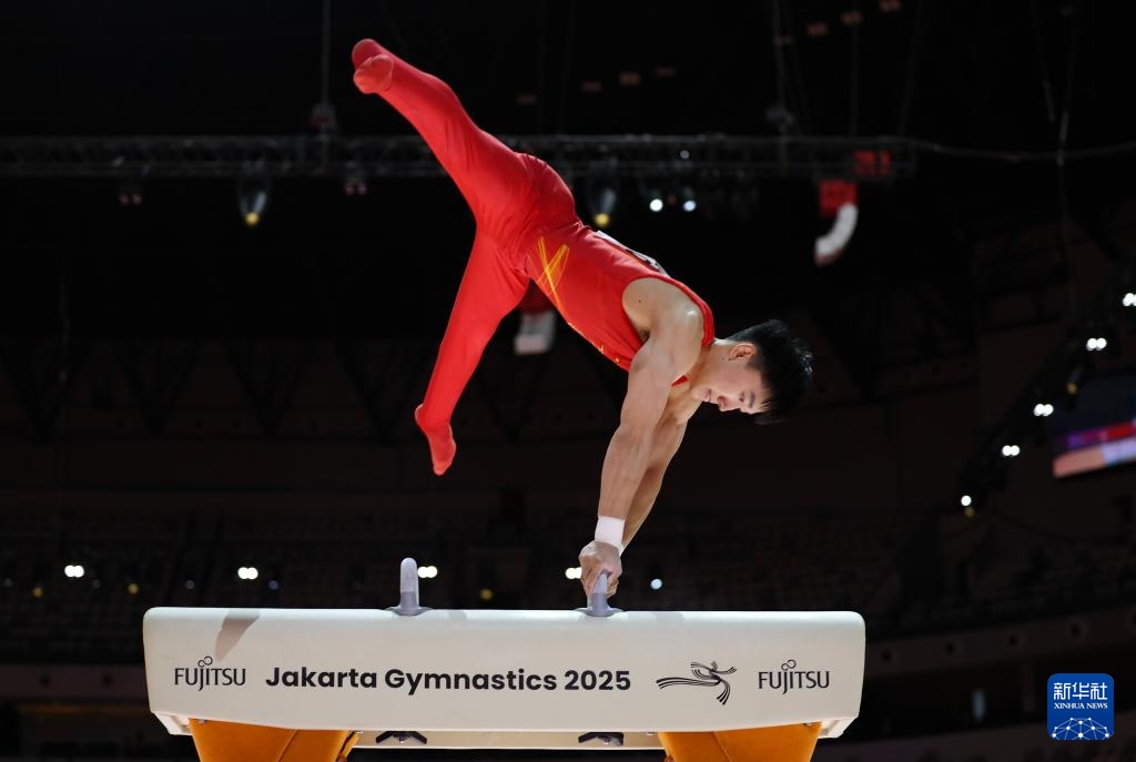 当日,在印度尼西亚雅加达进行的2025年国际体操联合会(FIG)竞技体操世锦赛男子鞍马决赛中,中国选手洪延明夺得冠军。