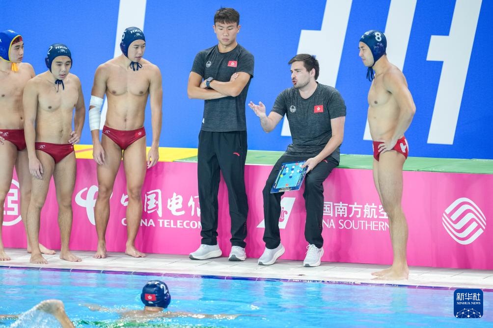 10月24日,香港队主教练基里尔·鲁斯塔莫夫(右二)在比赛间隙布置战术。