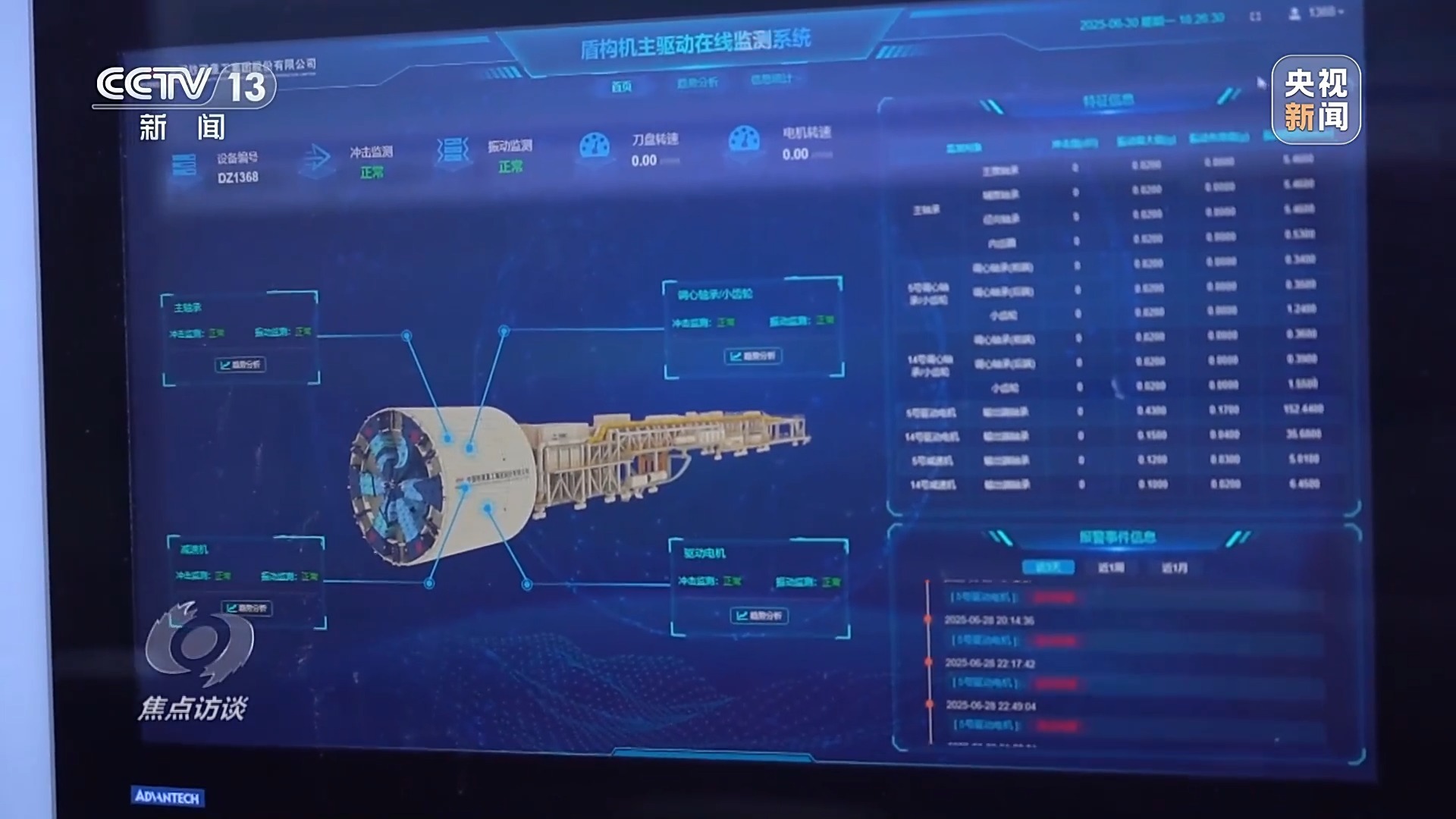 “江海号”作为国产最先进的盾构机,还创新应用了主轴承全状态实时监控系统、超前地质预报系统、管片构件智能拼装机器人等几十项新技术,它不仅是一台自动化程度很高的智能盾构机,也是一台数字化的盾构机。“江海号”几十个系统装配了成千上万个传感器,产生的海量数据不仅汇聚在主控制室,也实时传送到地面控制平台。