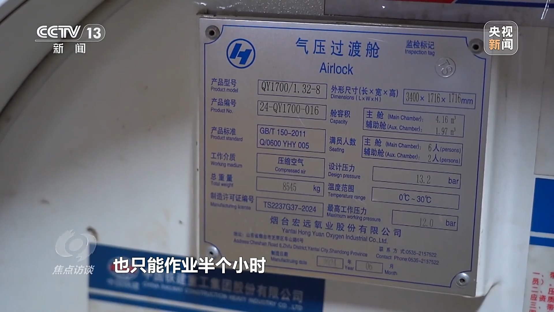 中铁十四局大盾构专家 陈健:进行换刀,目前要采取压缩空气的方法施工,最高限度达到6bar,在6bar压力下进行作业需要专业的潜水作业人员,也只能作业半个小时,超过7.5bar的作业时间会更短,减压时间就会更长,几乎不可作业。