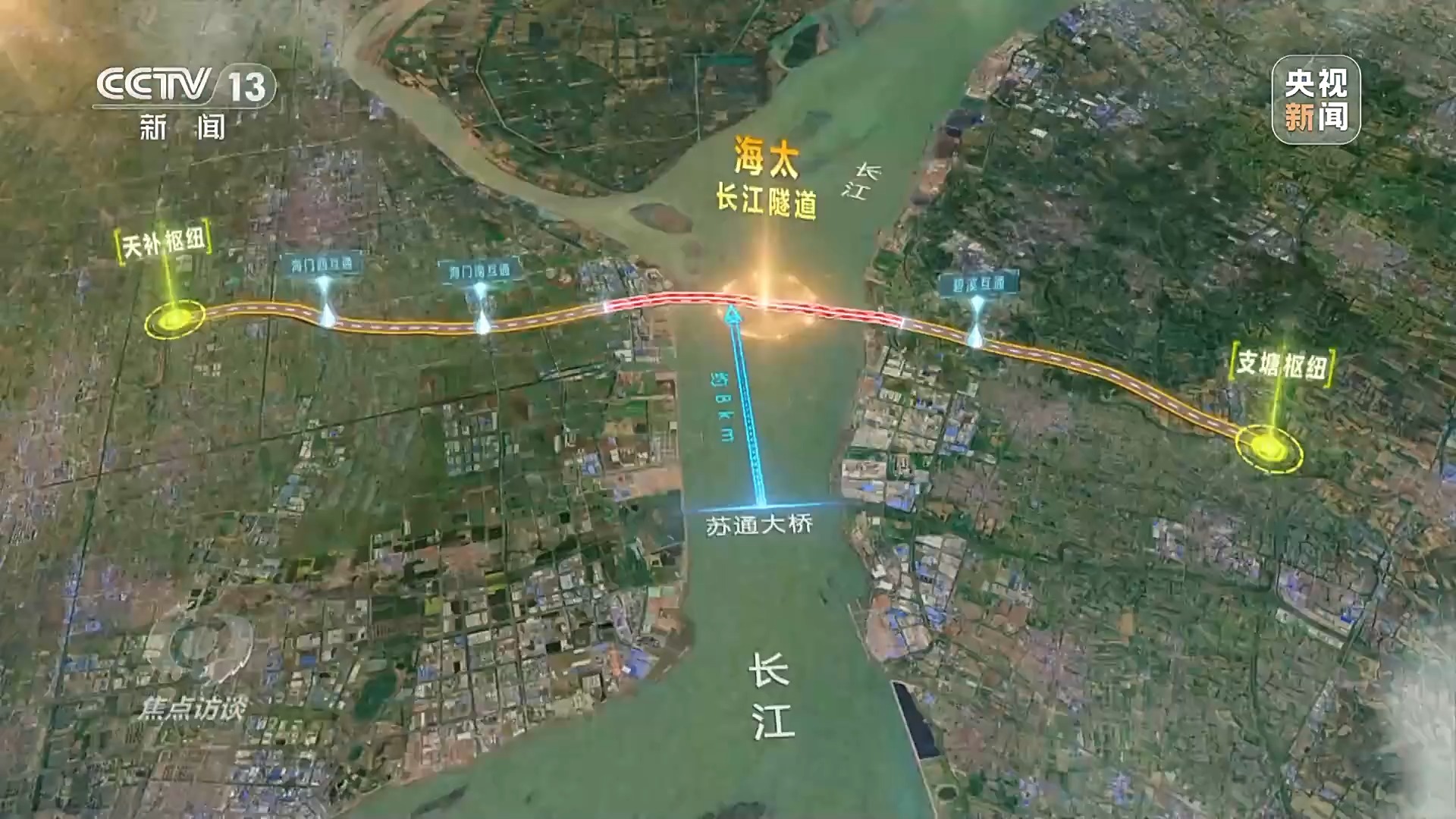“江海号”盾构机由中铁十四局和中国铁建重工集团联合打造,最大开挖直径达16.64米,专门为海太长江隧道项目定制。海太长江隧道连接江苏省南通海门区和苏州太仓市,过江隧道长11.185公里,其中盾构隧道段长9315米,是“十四五”期间国家重点建设的过江通道,也是目前世界最长公路水下盾构隧道和第一条设计时速100公里的过江隧道。建成后,过江通行时间将由目前的1小时压缩到10分钟。