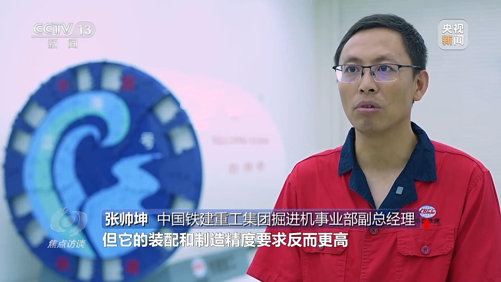 中国铁建重工集团掘进机事业部副总经理 张帅坤:直径越大,装配和制造精度要求反而更高,比如盾构机核心部件主驱动装备的精度都是以丝级计算的,一丝就相当于头发丝直径的1/6。