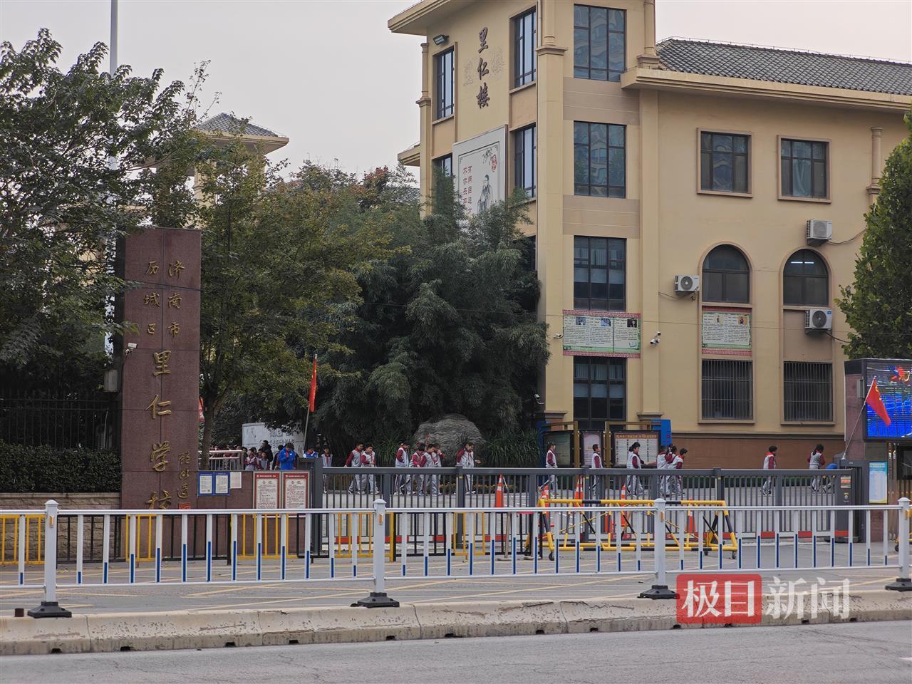 10月23日下午放学时段,里仁学校,孩子们像往常一样离开校园,学校的老师们也像往常一样在校门口送学生。