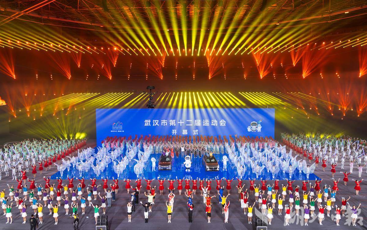 此刻,位于武汉经开区的武汉体育中心光影璀璨,武汉市第十二届运动会正式开幕。5000名观众与演职人员、运动员热情互动,会歌《车谷有约》旋律激昂,中国车谷活力四射,沸腾英雄之城。