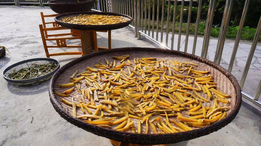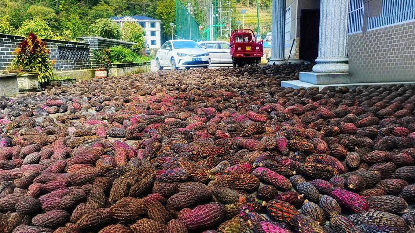再看那晒着的红薯条,红薯叶上翠嫩的茎,乍一看还以为是嫩绿的豇豆,透着清新与生机。上六峰村合作社里,经济林木的种子也在阳光下晾晒,它承载着村民们对未来的希望。
