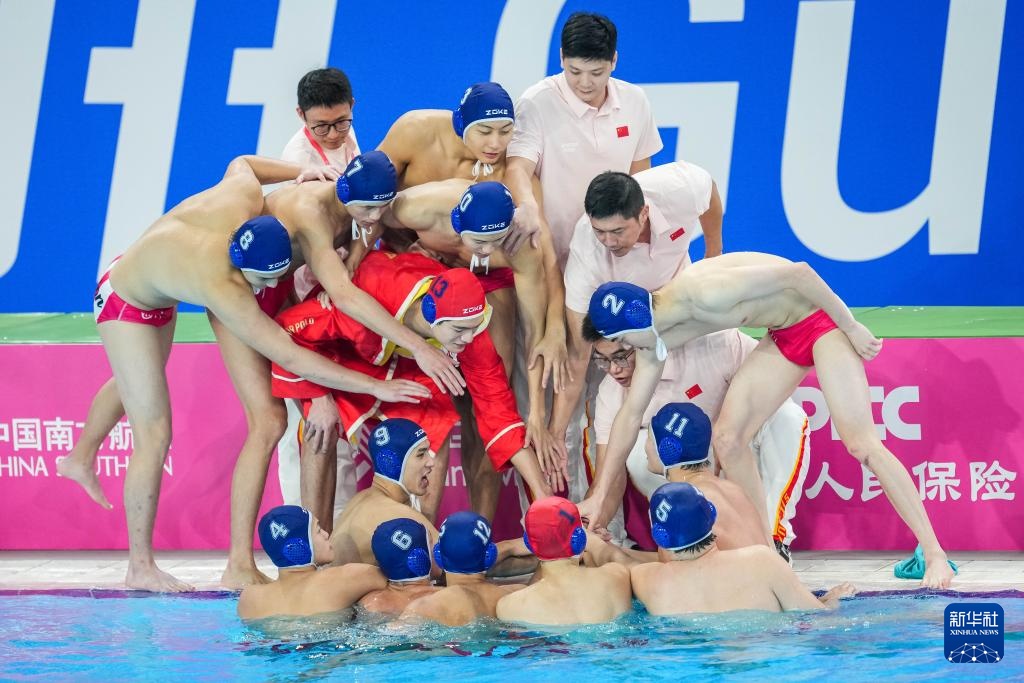 当日,在广州举行的第十五届全国运动会男子水球上半区半决赛第一场比赛中,上海队14比12战胜四川队。