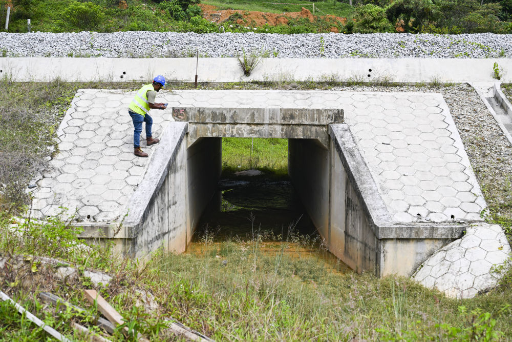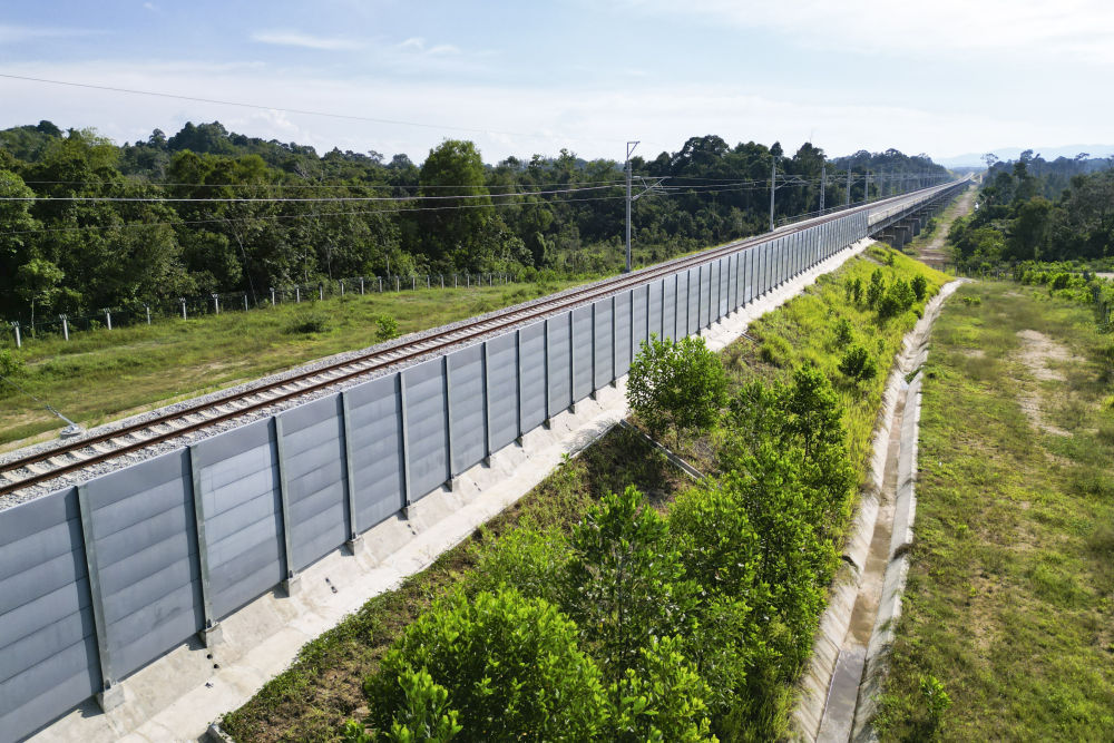马东铁为每个分部都聘请了本地环境官负责日常生态监测与检查,环境官每日巡查,追踪马来貘、野猪等野生动物的活动踪迹;全线精心设计20余个动物穿越通道、桥梁与涵洞,为野生动物迁徙保驾护航;通过优化线路设计,将受影响的森林保护区从35个缩减至13个,影响面积从逾2000公顷降至约216公顷;隔音墙的搭建,有效降低噪音对周边环境与居民的干扰;安全官与环境官常态化联合巡查,持续向工作人员普及野生动物保护知识,让生态保护成为施工中的自觉行动。