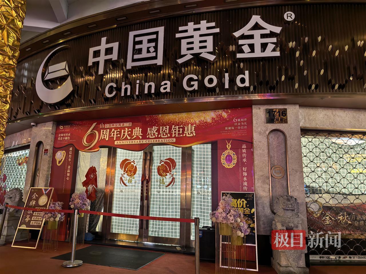 10月26日傍晚6时许,极目新闻记者现场看到,这家“中国黄金”门店大门紧闭,用布帘将玻璃橱窗全部遮挡,停止对外营业。该门店临街,位于一处闹市区的十字路口,附近大约有10家金饰店,其中包括两家“中国黄金”,所在街区除涉事门店外均正常营业。