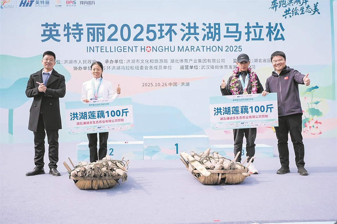赛事最终诞生男女全马及半马冠军,全马男子组冠军为广东省惠州市的邱远青,女子组冠军为贵州省六盘水市的陆银秀,半马男子组冠军是喻桐,女子组冠军是殷晓雨。组委会特别为全马男女冠军各赠送100斤洪湖莲藕——这一国家地理标志产品,以2300年种植历史与软糯清甜的口感,成为洪湖献给冠军的独特荣誉。