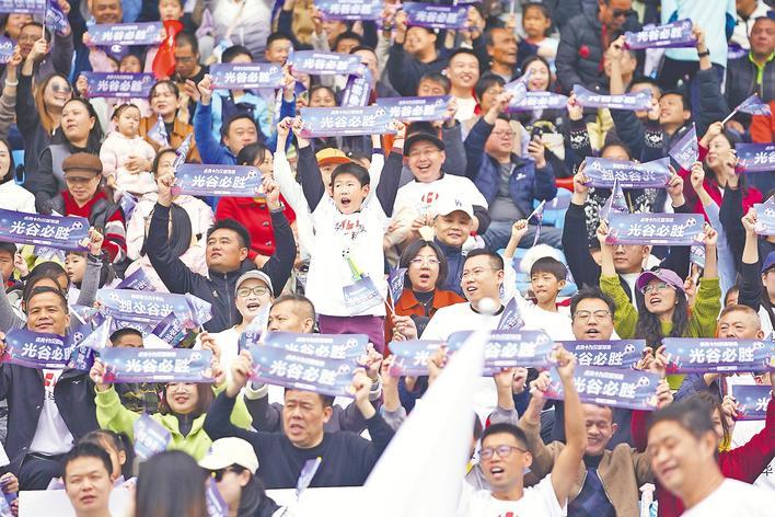 10月26日,武汉市城市足球超级联赛(城区组)现场,观众为球员助威。(湖北日报全媒记者 魏铼 摄)