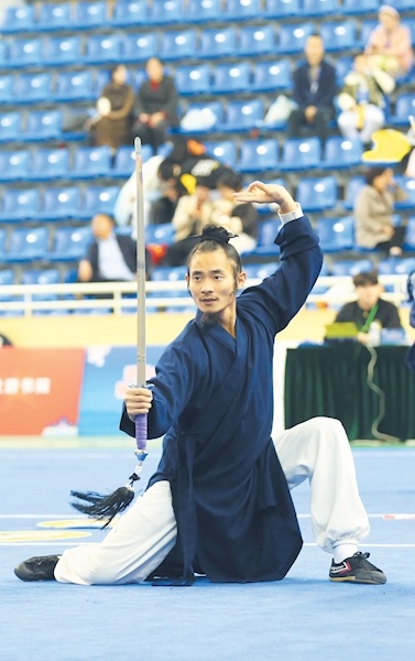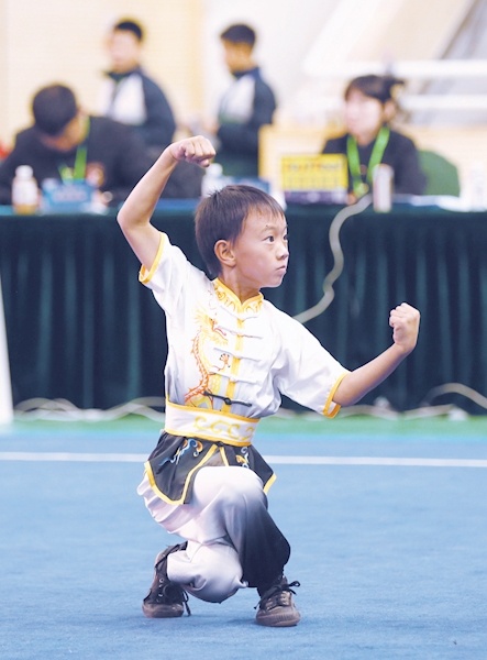 赛场东侧的 A组男子南拳比拼现场,7岁的谭明初像一株挺拔的小树苗,格外惹眼。他身着红黄相间的武服,小小的身躯站在比自己高出半个头的对手身旁,却毫无怯色。“呼——哈——”,拳脚挥动间,清脆的发力声在赛场间回荡,每一次出拳都透着股一丝不苟的认真。教练何沅泰介绍,这是谭明初第一次离开广西壮族自治区柳州市,也是第一次站在武当山的赛场。“他跟我说,认识了好几个练拳的大哥哥大姐姐,以后要跟他们一起比着练。”话音刚落,结束比赛的谭明初跑过来,拉着何沅泰的手说:“教练,下次我还要来武当山,这里的太极‘有劲儿’!”