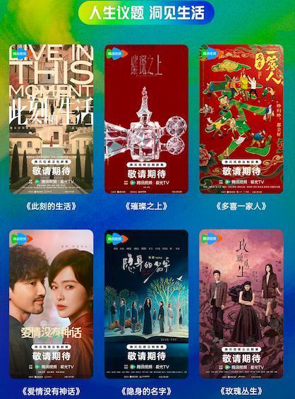中政委重点指导剧集《铁证》,基于真实扫黑案件改编,将继续牵手《扫毒风暴》编剧陈育新,导演五百首度展现扫黑常态化;由编剧赵冬苓、导演臧溪川打造的《赢风》,将由黄景瑜主演,讲述中国快递先锋发展的故事;古装女性传奇剧《金枝》将由爆款班底导演曾庆杰、编剧曹笑天携手打造;都市情感剧《此刻的生活》力邀唐嫣、俞飞鸿、娜扎、朱珠、张歆艺组成“中女天团”,直击中产跃阶背后的挑战与阵痛;以及《许我耀眼》的续篇《璀璨之上》将由导演陈畅携原班制作团队回归,升级呈现“爆款配方,全新故事”。