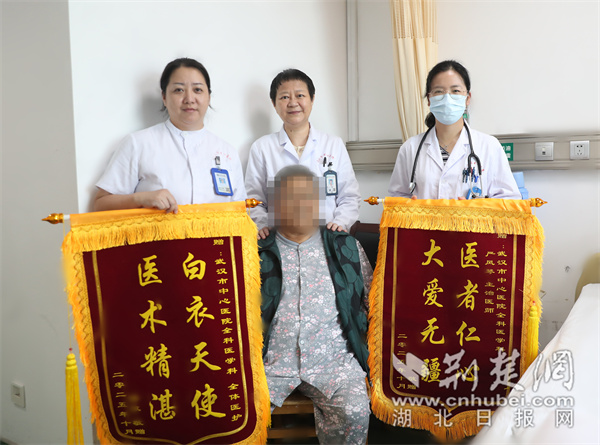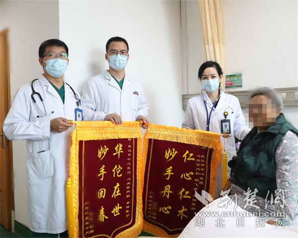 荆楚网(湖北日报网)讯(记者 林琳 通讯员 刘姗姗 胡天天)一场计划已久的武汉返乡之旅,在87岁陈奶奶(化姓)抵达故乡后突生变故。原本因腰椎不适入院,却意外揪出了性命攸关的“心脏危机”——冠脉堵塞高达95%。幸运的是,武汉市中心医院南京路院区全科医学科与心血管内科团队迅速反应、精准施治,成功挽救了老人的生命。出院前,陈奶奶的家属特意送上四面锦旗,向医护人员表达深深的谢意。