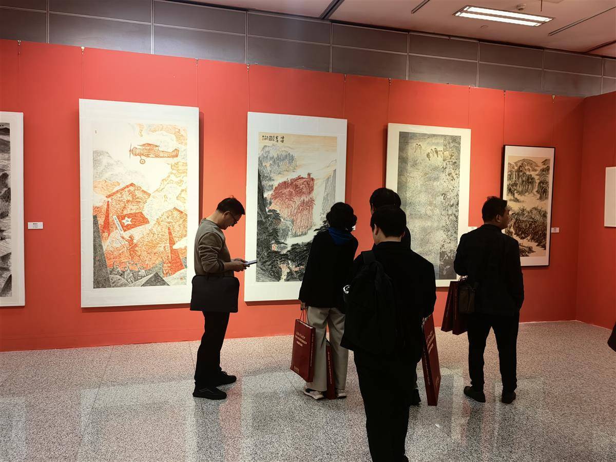 据了解,本次书画展参展规模与创作质量均创历届之最,共汇集省政府文史馆员、特邀艺术家及青年书画家精心创作的作品200余件。为精准契合“弘扬大别山精神”主题,参展书画家们前期深入大别山区开展实地采风:踏访黄麻起义等革命战场遗址,谒拜鄂豫皖苏区革命纪念馆等红色场馆,聆听老区群众讲述烽火岁月中的英雄故事,亲身感受新时代山乡振兴的沧桑巨变。在此基础上,艺术家们以写生为基、以情感为魂,创作出一批兼具历史厚重感与时代生命力的精品佳作——既有再现革命先辈浴血奋战的红色题材画作,也有描绘大别山生态之美、讴歌中国式现代化湖北篇章的现实题材作品,生动诠释了大别山精神在新时代的传承与发展,表达了对老区人民的深切崇敬和对湖北现代化建设的热忱礼赞。