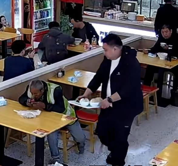 店内的监控摄像记录下这个过程。27日中午12时许,一名身穿工作马甲的老人在柜台前,准备用餐盘将饭菜端到餐桌上,不想一失手,餐盘掉到地上。在后厨的店主徐先生见状跟服务员说:“收拾一下,再给来一份。”他同时告诉大爷:“没事、没事,你先坐一下,做好了我给你端过去。”几分钟后,徐先生将一盘菜和三碗米饭端到大爷面前。