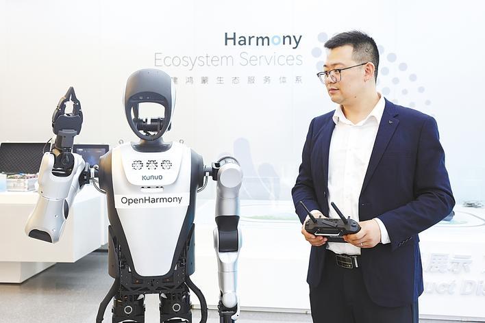 “这台机器人‘管家’正在学习鸿蒙生态里的‘官方语言’。”鸿蒙生态服务(深圳)有限公司总经理、鸿蒙生态创新中心主任杜金彪介绍,“不久的将来,在配备鸿蒙设备的环境中,您只需说‘天黑了,请关灯’,它就能自动调节室内照明;说‘这里需要打扫’,它便会安排扫地机器人工作。”