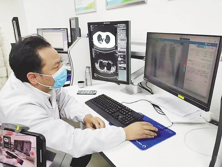武汉市肺科医院结核病专家进行远程复核检查。 (湖北日报通讯员 张全录 摄)