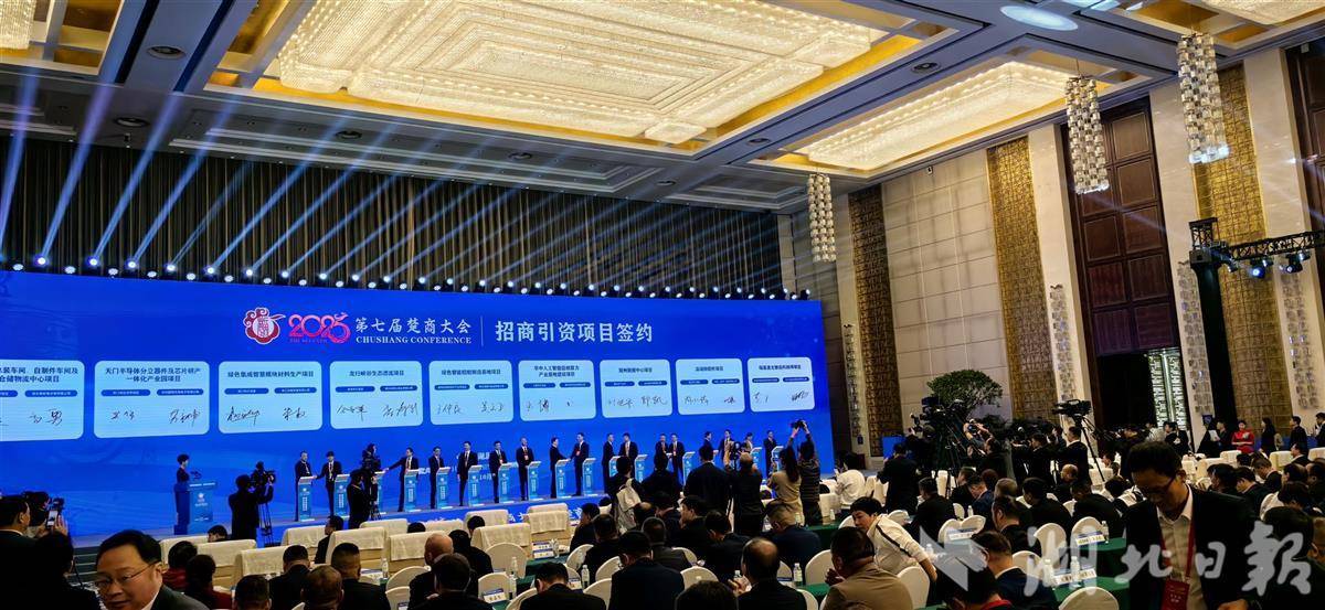 湖北日报讯(记者周寿江)10月29日上午,第七届楚商大会举行招商引资项目签约仪式。本届楚商大会期间,全国楚商与湖北省各市州共达成57个合作项目,总金额676亿元。大会现场签约项目18个,涉及光电子信息、新能源、节能环保、大健康、高端装备、生物医药、算力与大数据等领域,签约金额331.3亿元。