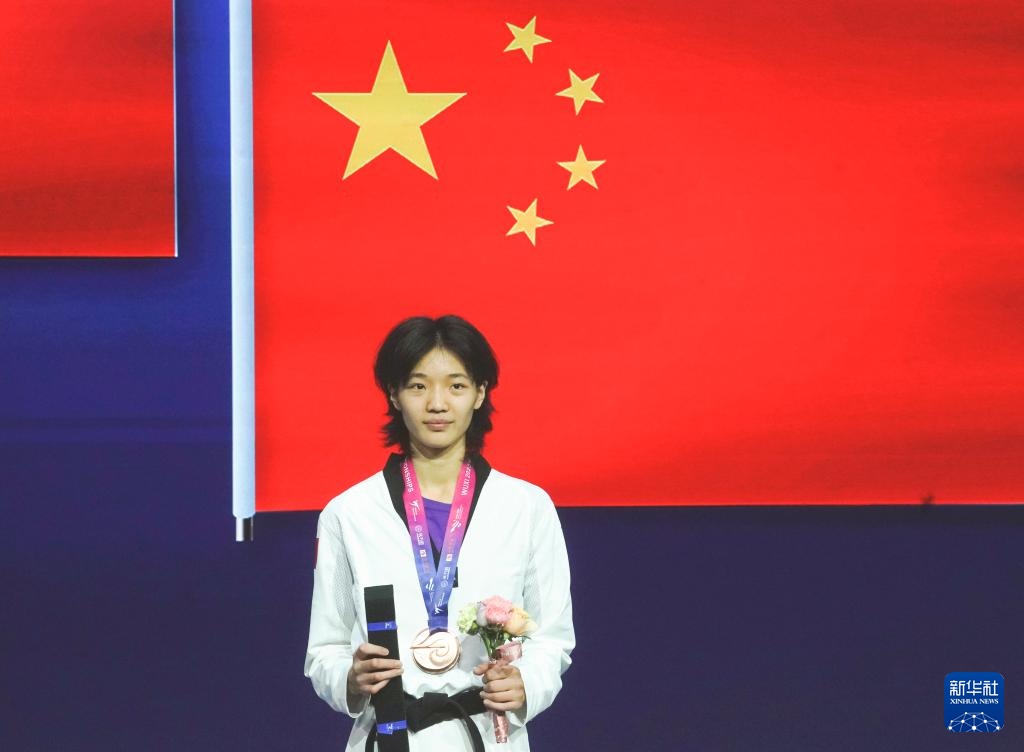 10月29日,季军中国选手陈熙敏在女子62公斤级颁奖仪式上。