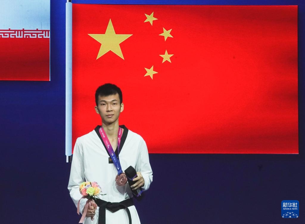 10月29日,季军中国选手黄科奋在男子58公斤级颁奖仪式上。