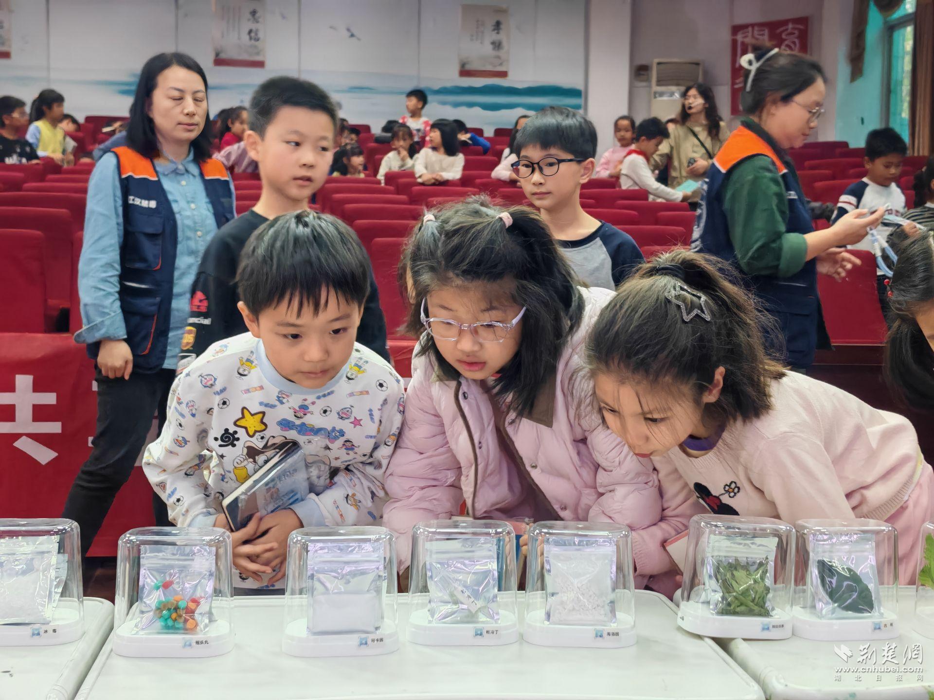 同学们近距离观察毒品模型。金丰 摄