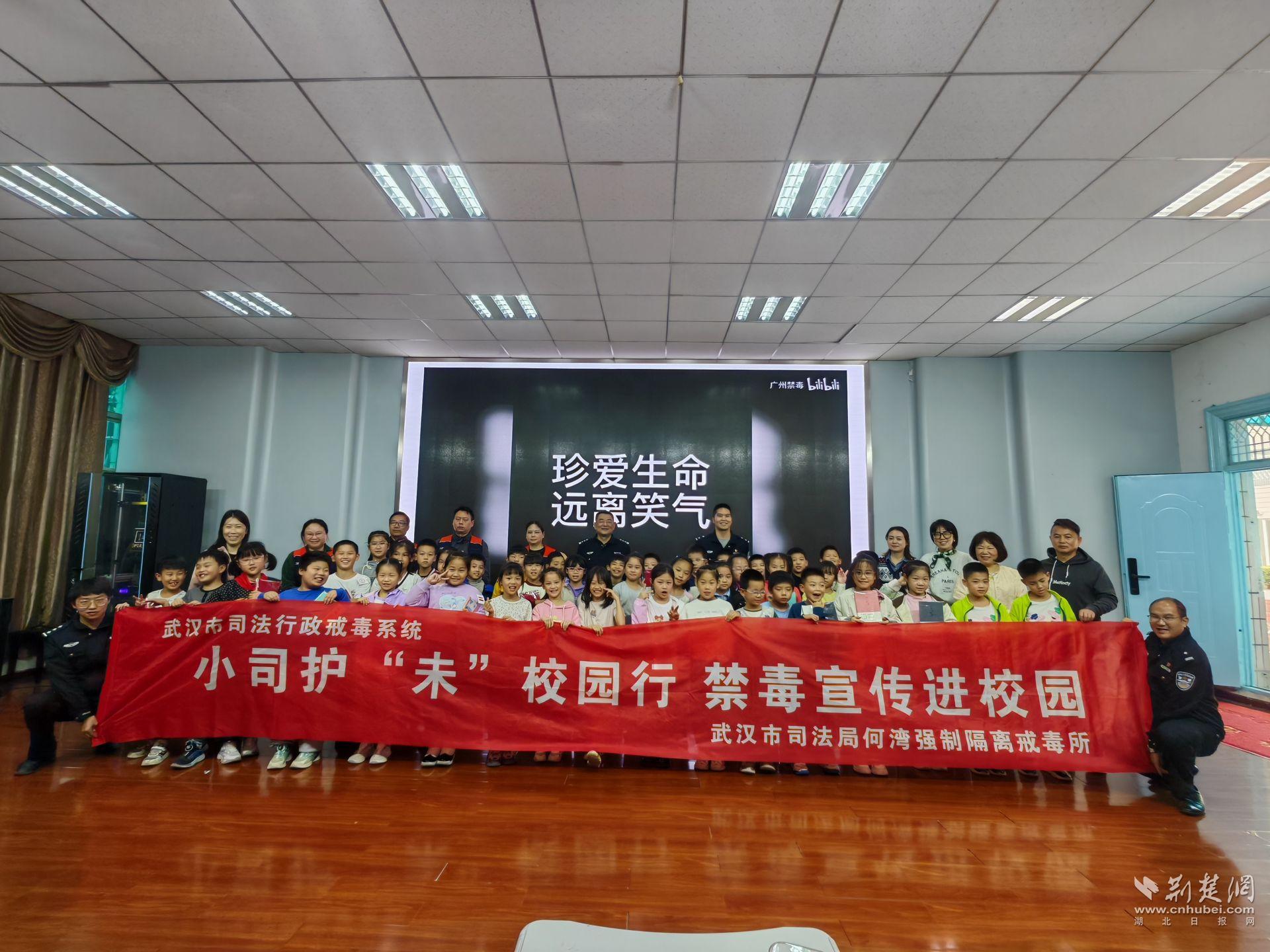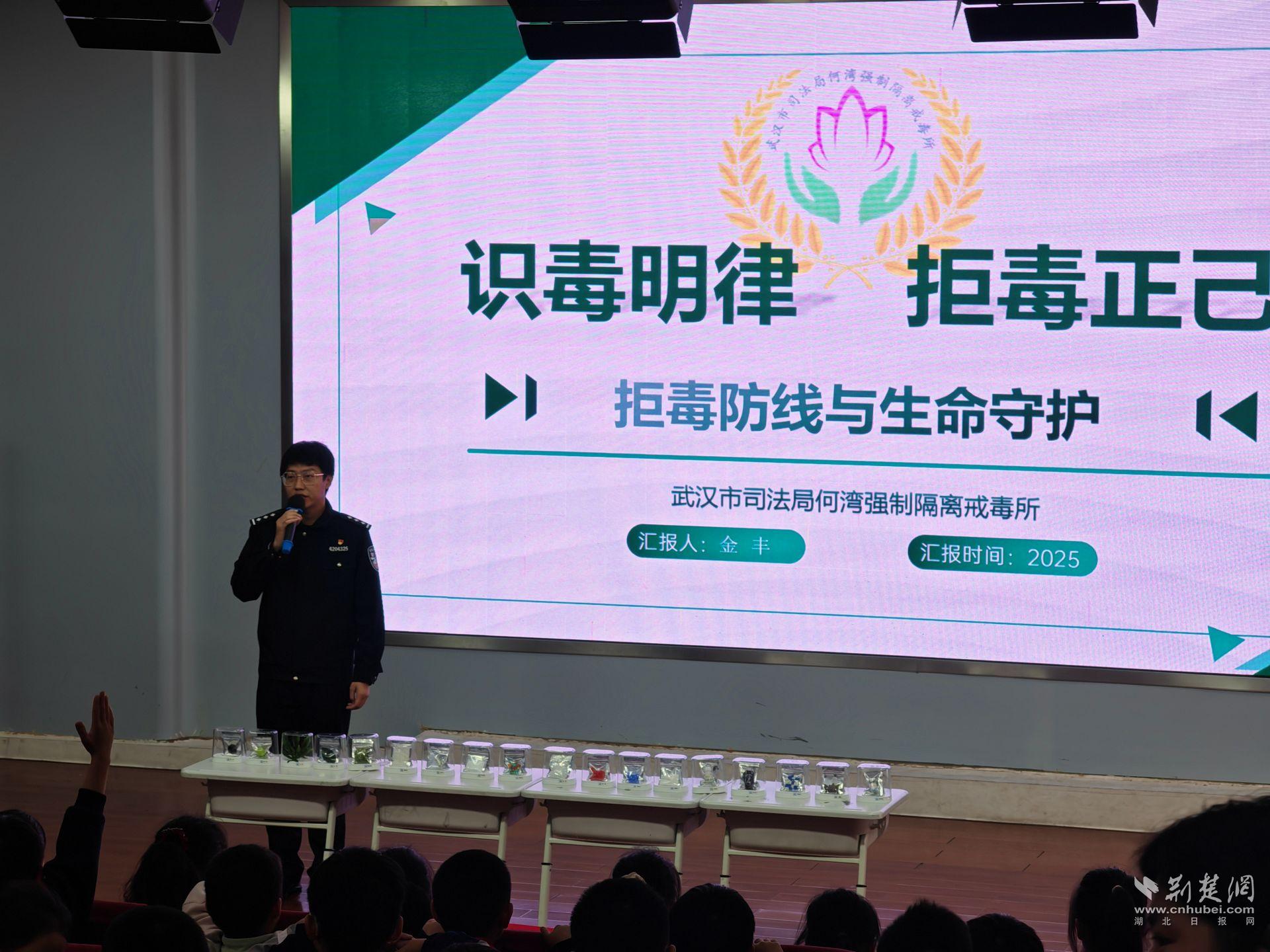荆楚网(湖北日报网)讯(通讯员吕刚)近日,武汉市司法局第二强制隔离戒毒所联合常青街道社区戒毒(康复)工作指导站、常青派出所,共同走进江汉区坞家墩小学,为该校800余名师生带来了一场内容丰富的禁毒知识普及活动。