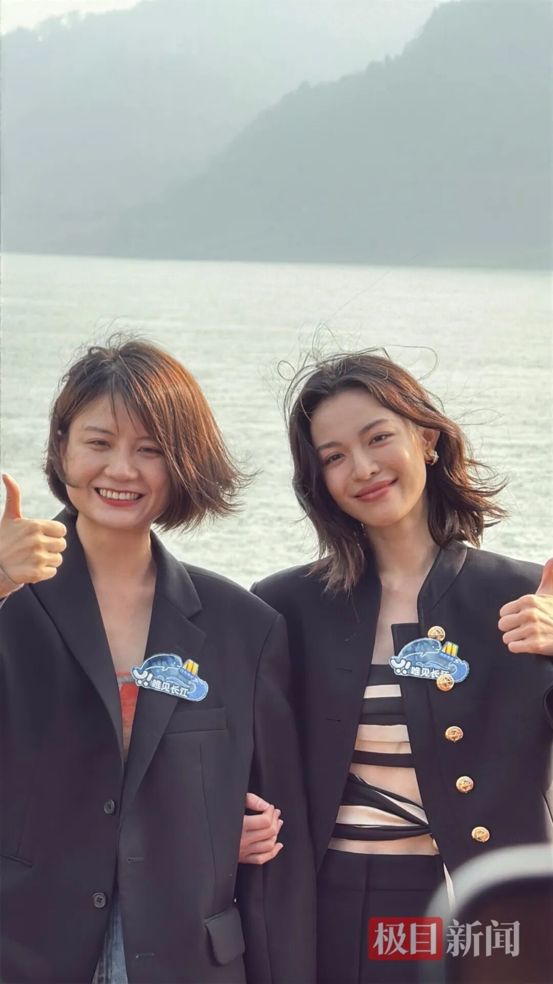 伴随着温柔的江风,电影《好东西》的编剧、导演邵艺辉与演员钟楚曦走上红毯。不同于前几天参加时尚活动时的华丽造型,此次钟楚曦以造型简约的微卷发、利落帅气的黑色套装出现在镜头前。