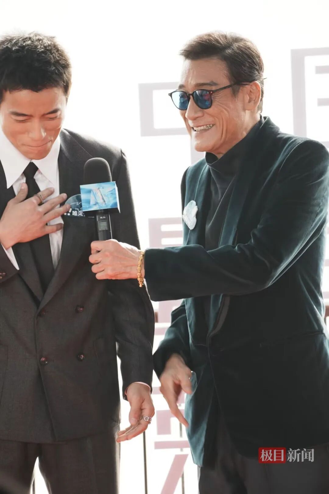 在观众的欢呼声中,67岁影帝梁家辉带着此沙、林秋楠、周政杰等《捕风追影》主创潇洒亮相,一行人装扮有型,引来无数镜头。向来幽默的梁家辉在与观众打招呼时,搞笑地说自己是梁家辉,不是渣渣辉(张家辉),而在听到导演称赞他是“老戏骨”时,直接上前纠正:“戏骨就戏骨,不要老戏骨。”
