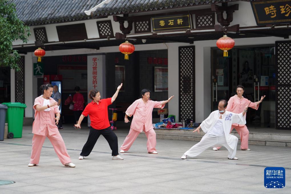 武汉市汉阳区江欣苑社区的居民在健身(2021年7月18日摄)。新华社记者邢广利摄