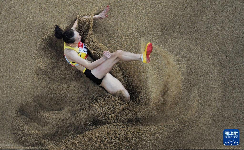 2009年10月23日,湖南选手刘花花在第十一届全运会女子跳远比赛中。新华社记者李尕摄