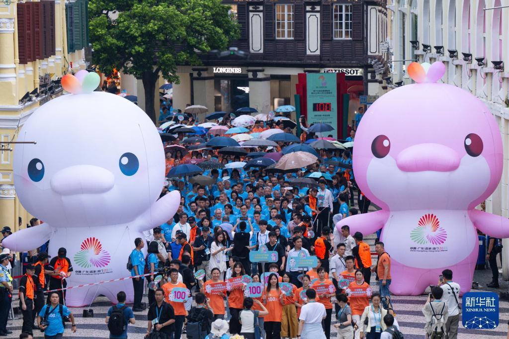 8月1日,澳门群众参加第十五届全国运动会倒计时100天庆祝活动。新华社发(张金加摄)