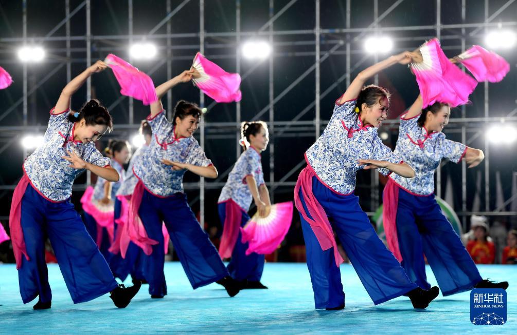 2019年9月11日,表演者在全民健身展演活动庆祝全运会60周年活动上进行广场舞展示。新华社记者刘潇摄