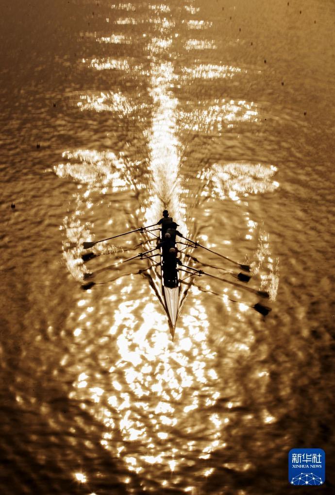 2017年8月26日,参加第十三届全国运动会赛艇比赛的选手在海河中进行训练。新华社记者费茂华摄