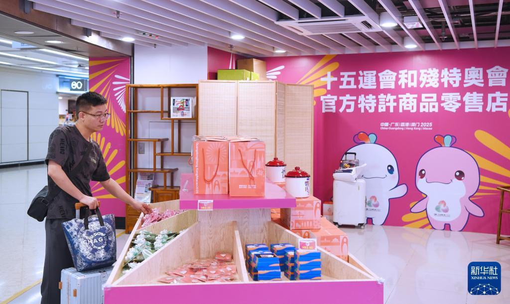 7月14日,一名男子在香港西九龙站官方零售店浏览。新华社记者陈铎摄