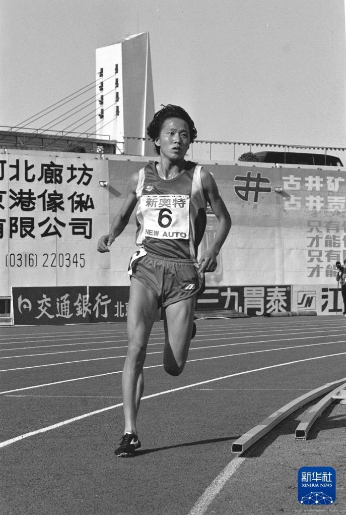 1993年9月13日,辽宁队王军霞在第七届全运会田径比赛女子3000米决赛中。 新华社记者兰红光摄