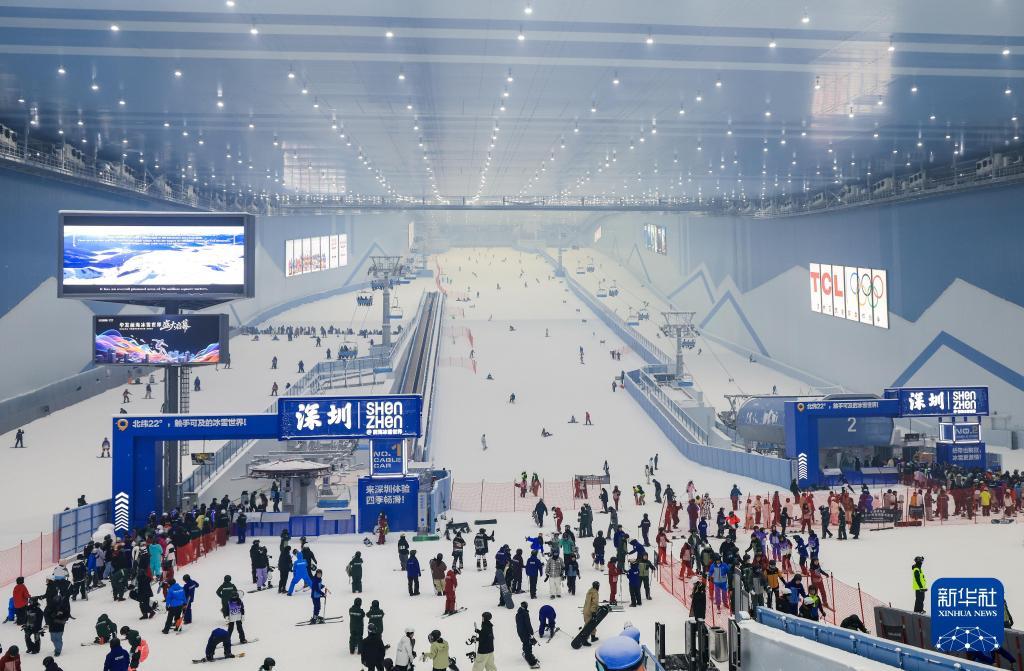 2025年9月29日,滑雪爱好者在深圳·前海冰雪世界滑雪。新华社记者毛思倩摄