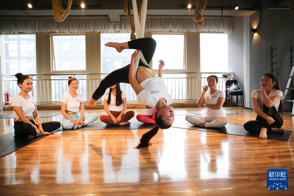 2018年8月8日,瑜伽爱好者在贵阳一家瑜伽馆内练习瑜伽。新华社发(张晖摄)