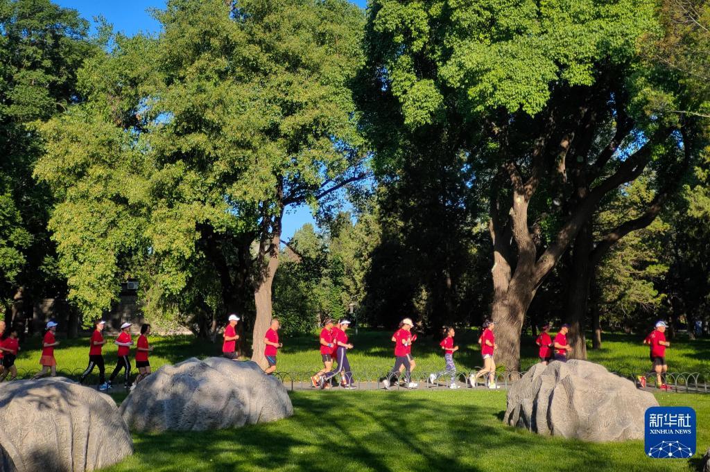 2023年6月3日,跑步爱好者在北京天坛公园内晨跑。新华社记者鞠焕宗摄