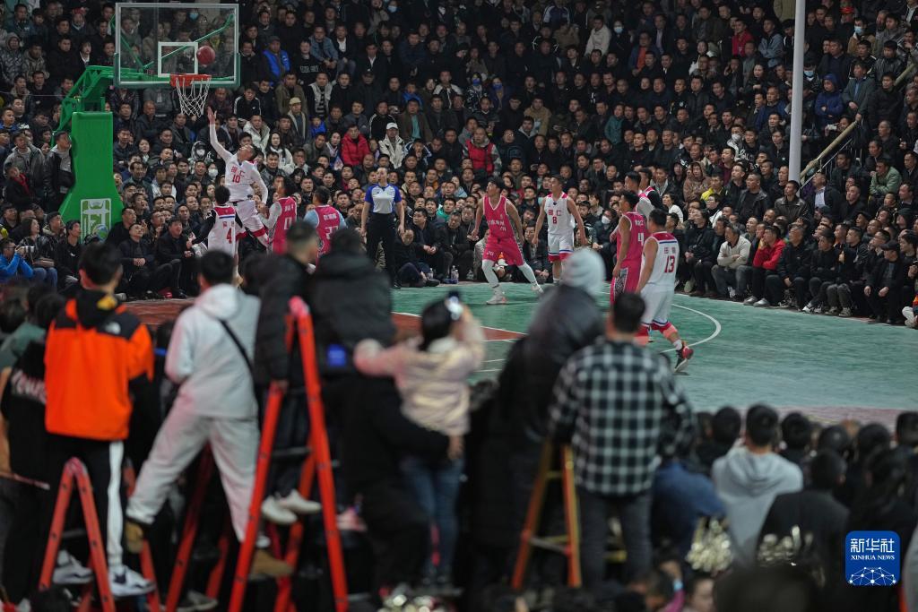 2023年3月25日,当地群众观看贵州省首届“美丽乡村”篮球联赛总决赛。新华社记者李尕摄
