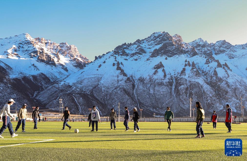 西藏那曲市嘉黎县中学的学生们在踢足球(2022年11月23日摄)。新华社发(索朗摄)