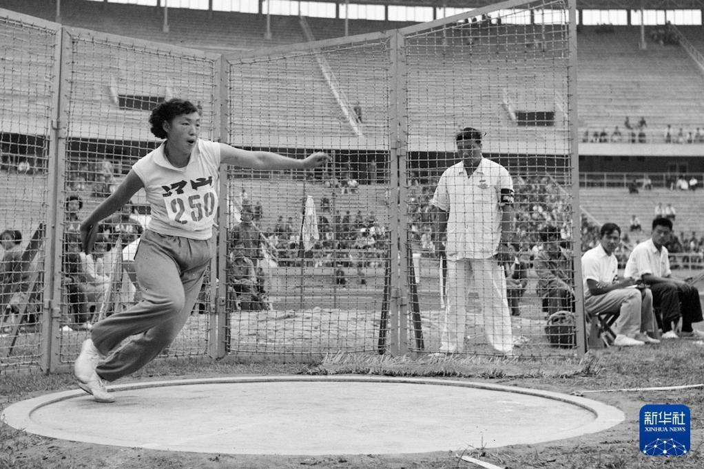 1959年9月17日,辽宁选手石宝珠在第一届全国运动会上以47.93米的成绩取得女子铁饼第一名。新华社记者张赫嵩摄