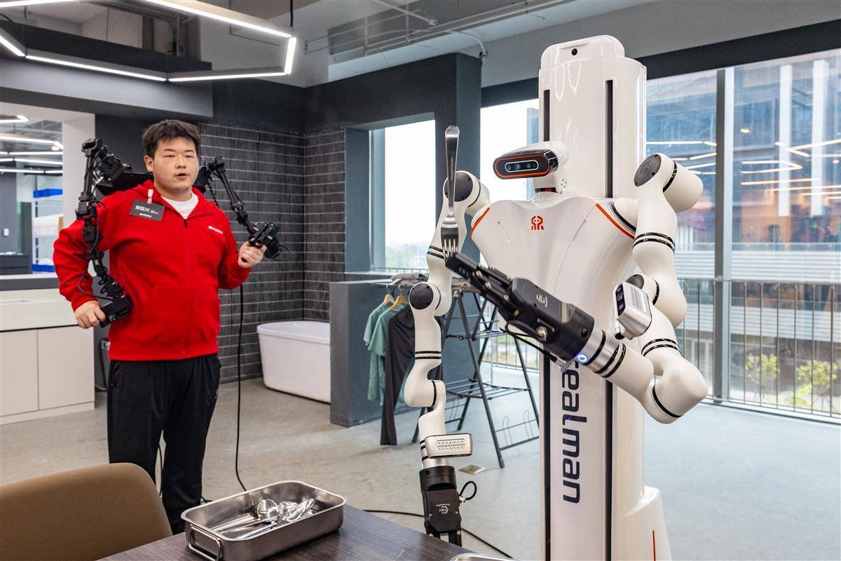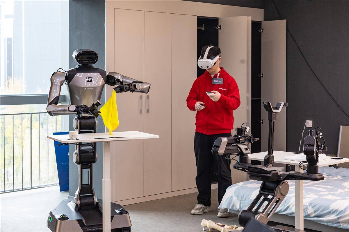 10月30日,全国首个全链条自主可控的机器人仿真实训场在武汉临空港经济技术开发区(东西湖区)正式启用。据介绍,该机器人训练场由东西湖区与北京谋先飞技术有限公司共同打造,基于自研物理引擎MotrixLab,实现全链路技术完全自主可控,目前已构建起家居、商超、物流等多领域虚实结合训练场景,在数据工程师的操控下,机器人可完成数据采集、仿真训练等任务。此举标志着我国打破国外机器人仿真训练技术垄断,为全球具身智能产业链提供强劲”中国引擎”。(湖北日报全媒记者 倪娜 摄)