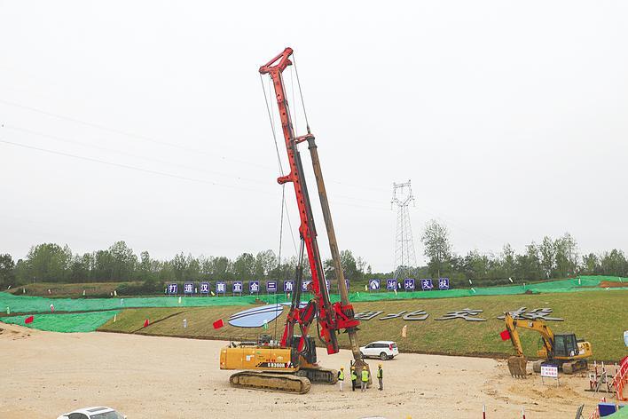 桥梁桩基施工。(湖北日报全媒记者 戴辉 摄)