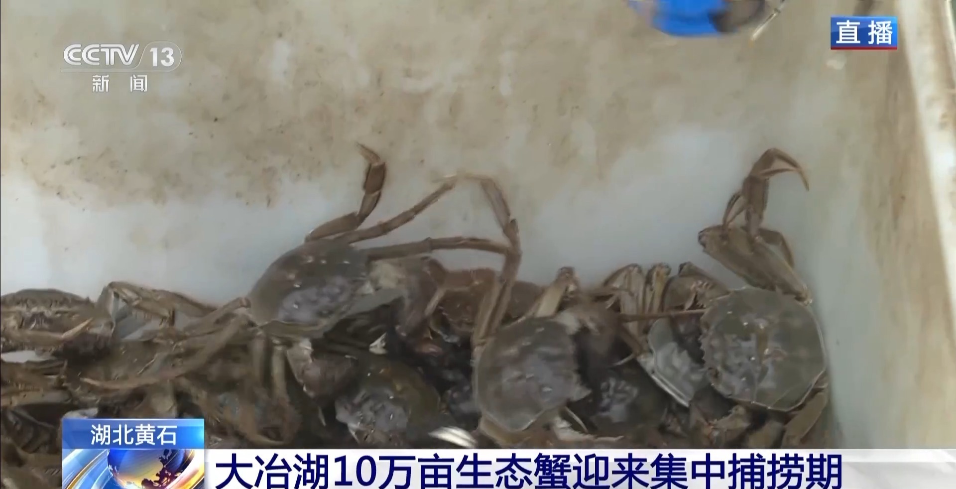 总台记者 鄢艳:湖北黄石大冶湖目前正是捕捞螃蟹的高峰期,现场非常热闹,不断有渔船满载而归。在岸边已经有收购车辆在等候,收购完后,将会把这些新鲜的螃蟹发往全国各地。