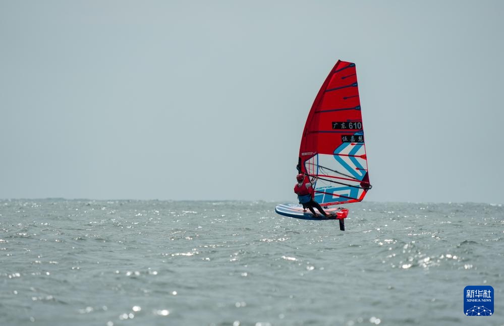 10月30日,广东队选手伍嘉慧在女子水翼帆板级比赛中。最终,她获得亚军。