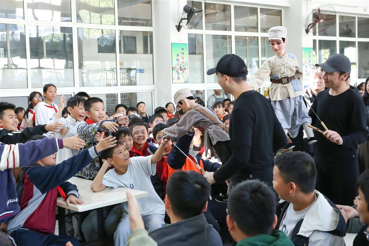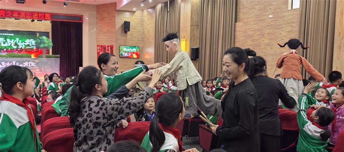 湖北日报讯(见习记者甄子萱、通讯员武小青、杨青)“我要跟你们走,打鬼子报仇!”10月30日下午,武汉市光谷实验小学新竹路校区礼堂内,“2025年武汉市青少年演出进校园活动”带来的木偶戏《抗战小英雄》正在上演,“火烧竹篱笆”“智擒狗汉奸”等情节牢牢抓住了孩子们的目光。