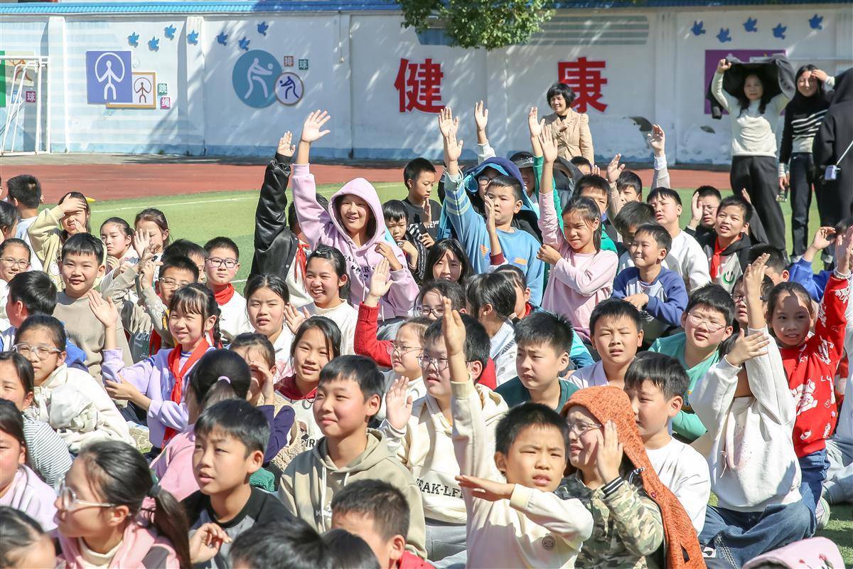 邾城街第四小学 孩子们举手互动