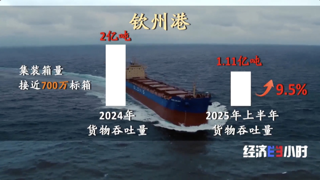 广西钦州港,是我国西部陆海新通道的重要节点,通过铁路、公路、水运等多种方式成为中西部货物出口的集散地。2024年钦州港货物吞吐量突破2亿吨,集装箱量接近700万标箱。2025年上半年,钦州港货物吞吐量达1.11亿吨,同比增长9.5%。货物吞吐量增长的背后,钦州港货物监管和转运效率也在悄然发生着变化。