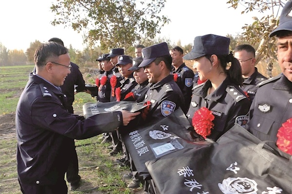 极目新闻记者注意到,连日来,服务队收玉米的视频在网上引发热议。网友称,于田民辅警是真干活不作秀,警服上的泥土就是“为人民服务”的勋章。10月29日,于田县公安局受到了上级的表彰。